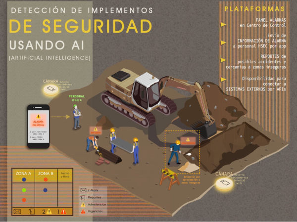 Sistema capaz de detectar implementos de seguridad y personas en zonas inseguras.